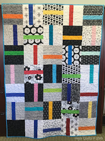 The $25 Gift Certificate from Sew Me A Song goes to Melinda who blogs at Quiltn in Wilton and she finished this bright and cheerful child sized quilt: